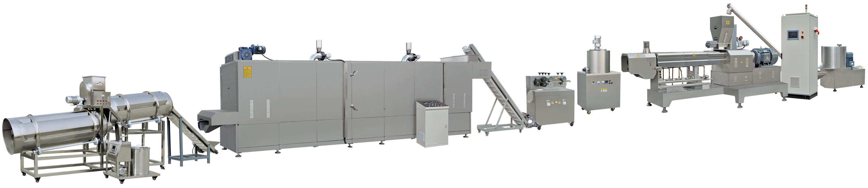 The processing line makes use of wheat flour, corn flour, corn starch, tapioca starch, and potato starch as uncooked materials.