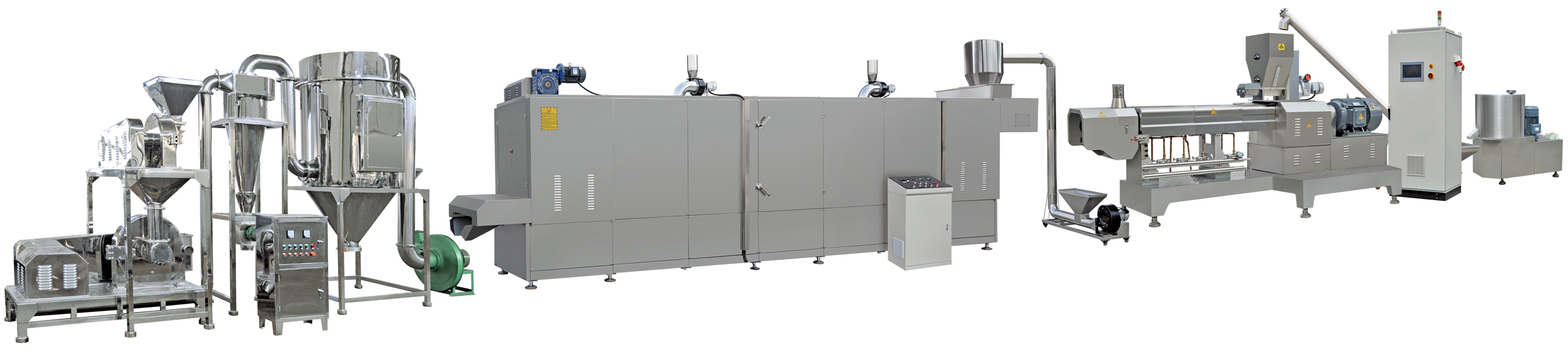 Thru extruding, inflating, drying, crushing, and mixing, it can produce many types of nutrition powder, including infant rice powder, sesame paste, beans powder, and so forth.