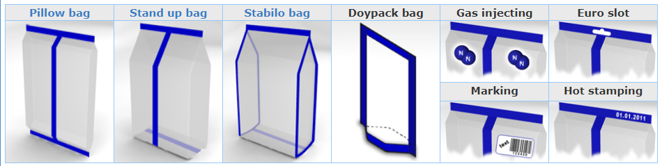 Depending on the desired bag type, the vertical packaging machine is equipped with different types of formers. The bags that could be formed by this type of machine: