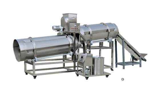 Dog Food Making Machine mainly uses maize, fish powder, meat powder, and some food additive as the main raw materials, through mixing, extruding, roasting, and flavoring to get the final puffed pet food.