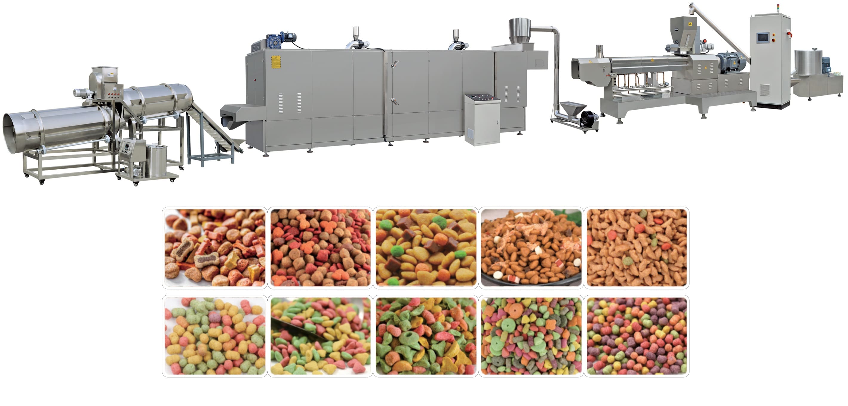 Cat Food Making Machine strains in particular use maize, fish powder, meat powder, and a few meal components due to the precept raw materials, through blending, extruding, roasting, and flavoring to get the very last puffed home canine food.